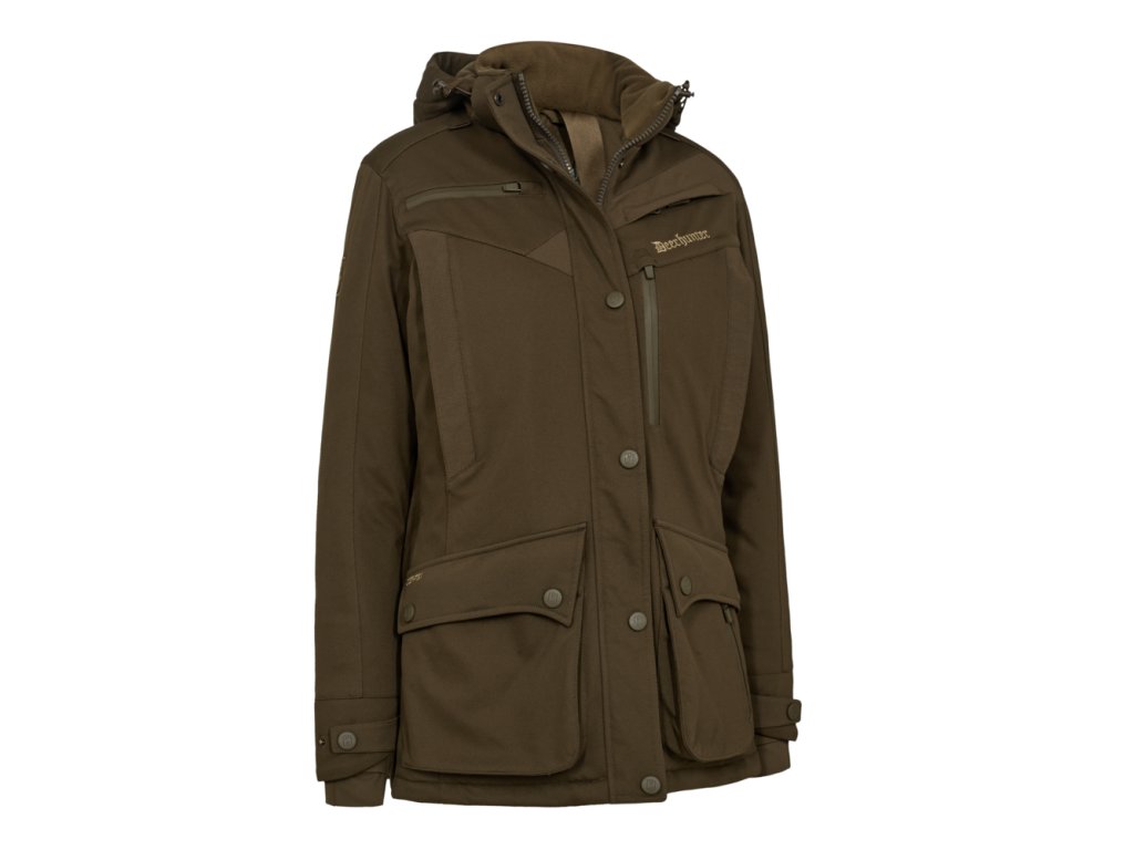 Přestože je bunda objemnější kvůli silné izolaci, stále si zachovává specifický dámský střih (projmutí v pase, tvarovaný hrudník). Deerhunter dbá na to, aby i funkční zimní oblečení pro ženy vypadalo dobře a nebylo jen neforemným "unisex" modelem.