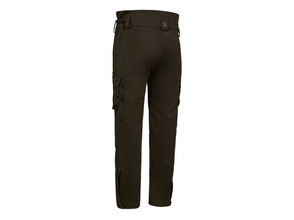 Základem je tichý strečový materiál, který nešustí a umožňuje tiché přiblížení ke zvěři. O ochranu před živly se stará osvědčená membrána Deer-Tex® Performance Shell, která je 100% nepromokavá a větruodolná. Komfort při fyzické aktivitě zvyšuje lehká síťovaná podšívka, která efektivně odvádí vlhkost od těla, a anatomicky tvarovaná kolena.