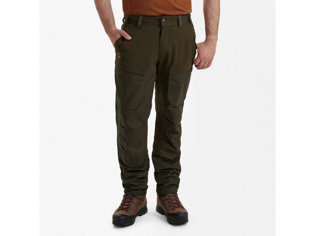 Technické kalhoty Deerhunter Strike s membránou Deer-Tex® nabízejí optimální ochranu před všemi povětrnostními podmínkami a dokonale se hodí ke zbytku kolekce Strike. Nepromokavé, větruodolné a vysoce prodyšné, s přidanou 4-směrnou strečem pro zvýšenou mobilitu, jsou ideální pro aktivní lov. Je zde dostatek úložného prostoru pro lovecké nezbytnosti včetně bezpečné kapsy na nůž. Pro přizpůsobení střihu mají předtvarovaná kolena, elastický pas a nastavitelné zapínání na kotníky. S ventilací na zadní straně stehen.