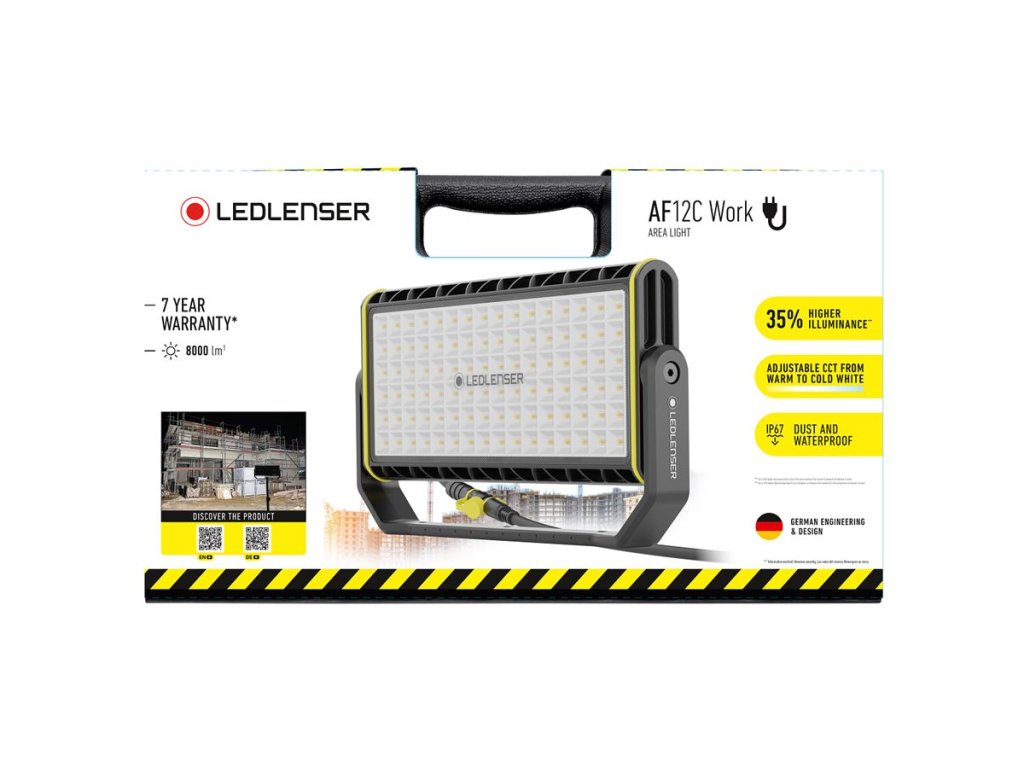 Ledlenser AF12C Work s extrémní jasností až 8000 lm a technologií Multi-Concentrated Light poskytuje účinné osvětlení při minimalizaci oslnění. Navíc s flexibilní montáží, vysokou ochranou proti vodě a prachu (IP67) a možností připojení k Bluetooth je to ideální společník pro stavební inženýry, firmy i týmy záchranných složek.