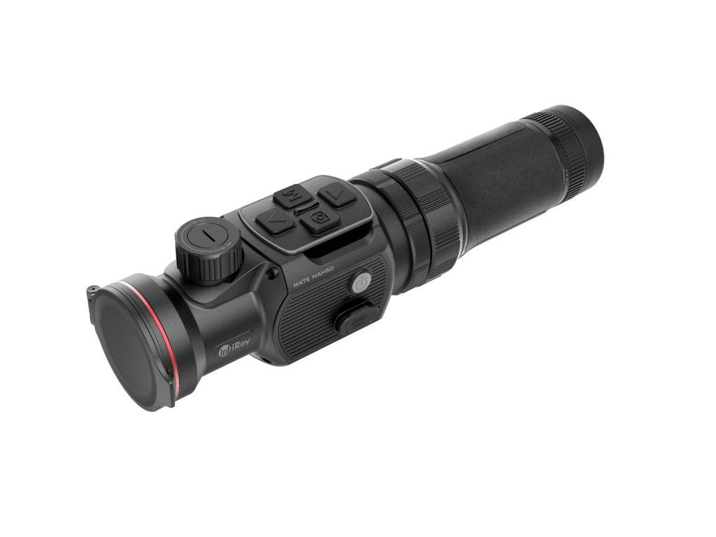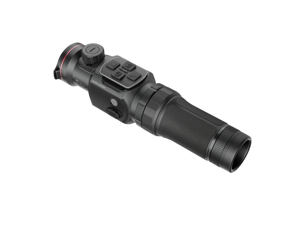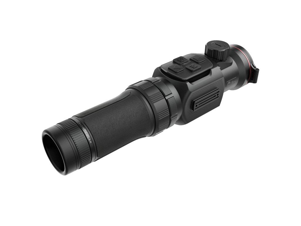 Termovizní zaměřovač Thunder 2.0. Čočka 35 mm. Optické zvětšení: 1,82x. Digitální zvětšení až 8x. Srnčí detekce 1 800 m. Displej OLED 1024x768 px. Jádro Hikmicro...