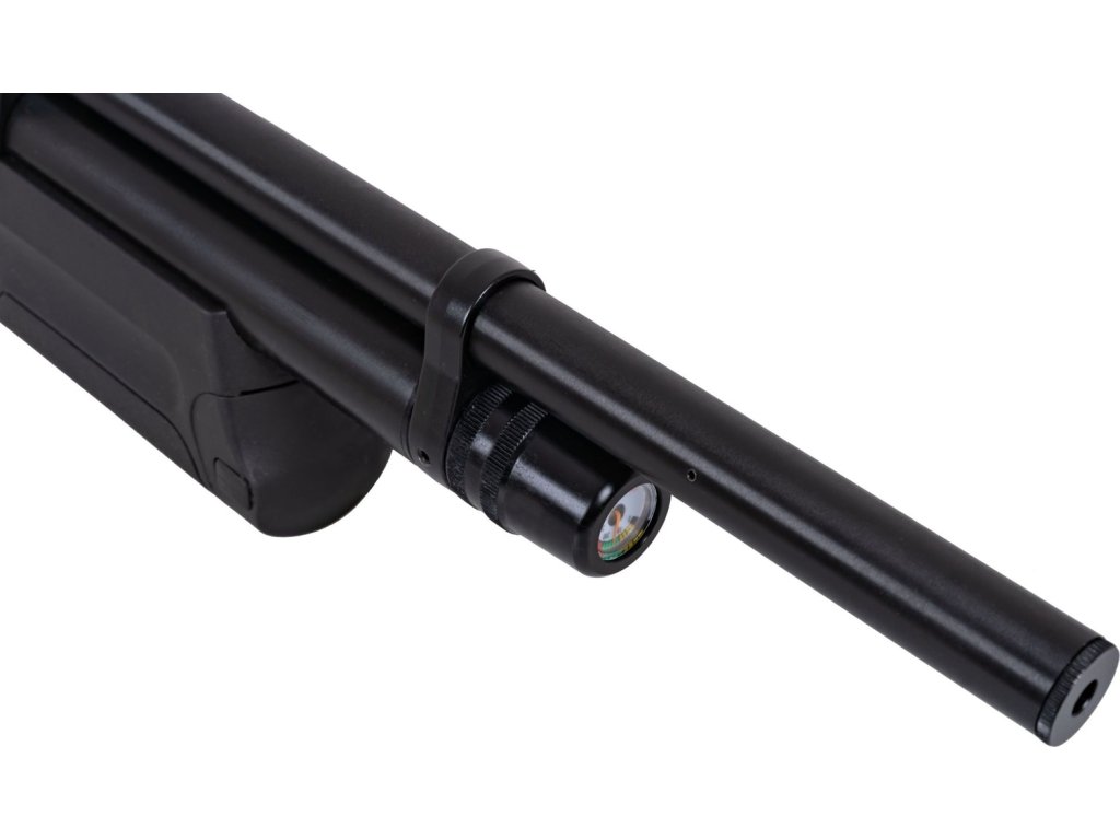 Ocelový zásobník vzduchu nazývaný také jako kartuš má zvětšený objem na 280cc. Maximální plnící tlak činí 200 BAR. Aktuální tlak můžete kontrolovat na manometru v přední čísti kartuše.
